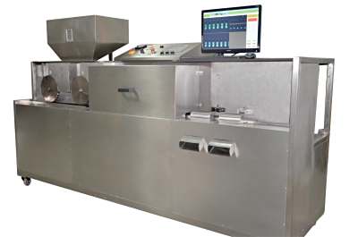 (1) 药囊全自动检测机由PLC控制,可在触摸屏上对需检查胶囊的重量上下限等参数进行设定,并能自动跟踪与记录相应参数。同时,在触摸屏上能显示自动统计的合格品产量以及超过上偏差及下偏差的数量及比例等数据。触摸屏内能储存设定各个产品的胶囊重量以及允许的偏差值,并可通过菜单对产品实行管理,更换规格简单、方便。